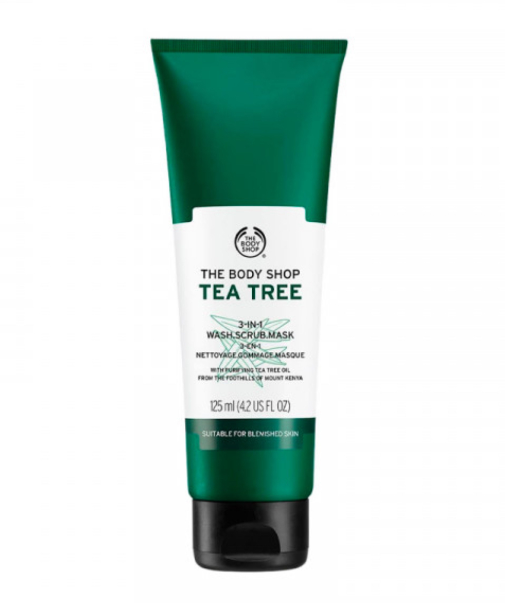 مقشر يحتوي على زيت شجرة الشاي لتنظيف البشرة بفعالية.