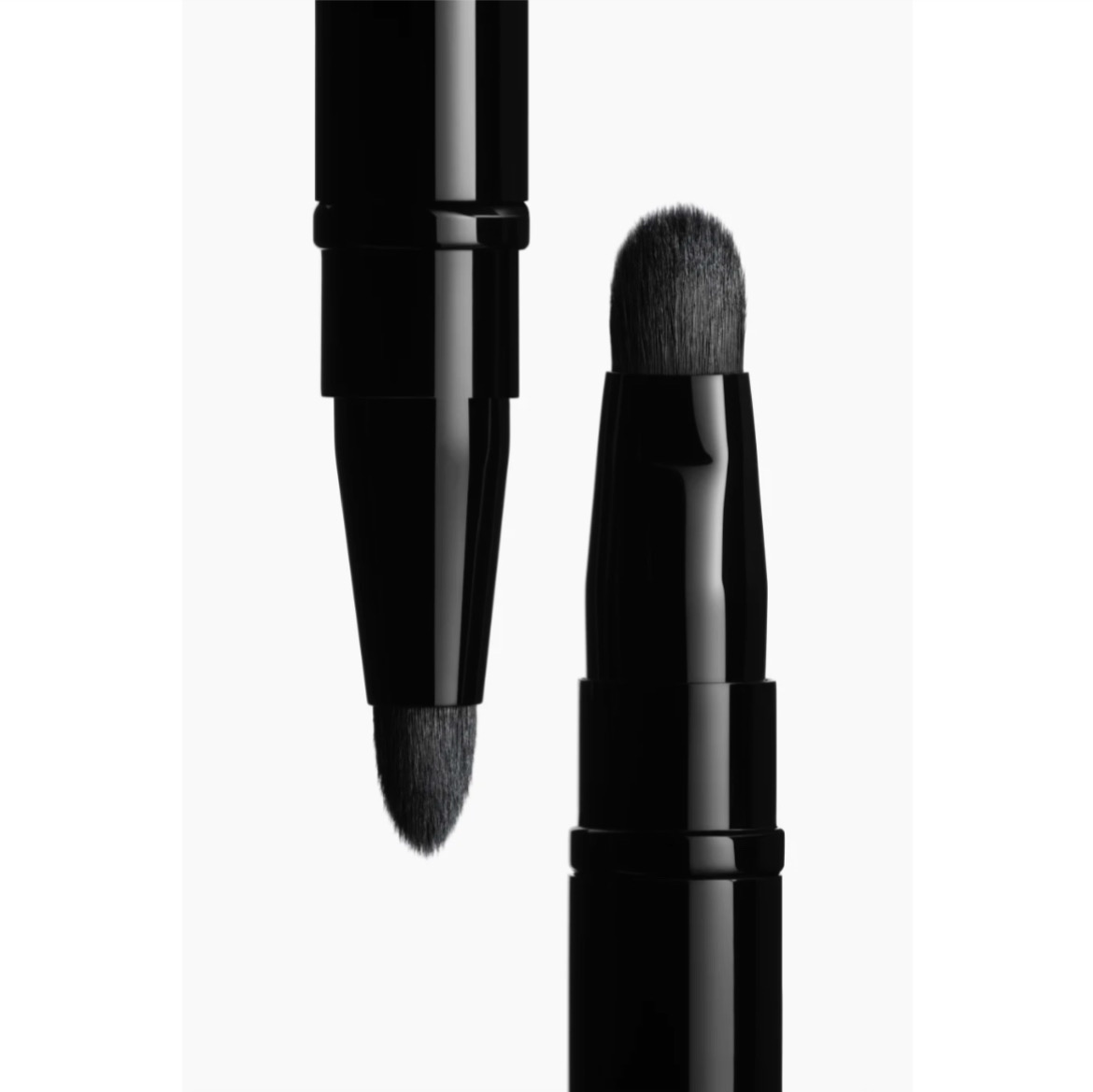 فرشاة ذات طرفين قابلة للسحب من شانيل لتحديد ومزج ظلال العيون حول محيط العين بدقة. طرف واحد مسطح لتطبيق اللون وتحديد شكل العين، والطرف الآخر أطول وألين للمزج وتلطيف الظلال للحصول على مظهر ناعم ومتدرِّج.